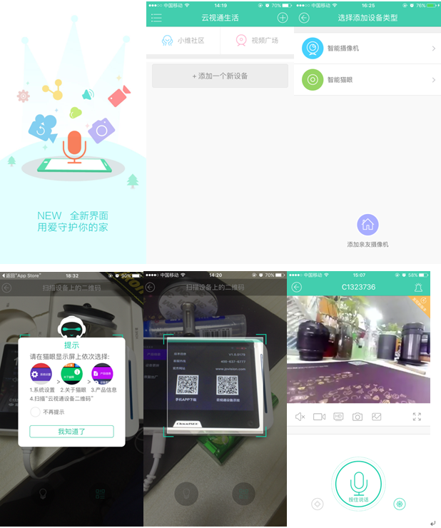 正是如此,作为一款智能网络监护产品,专属的手机APP是必须要有的。开机后按照设置向导,扫描二维码能够直接下载到APP。或者在苹果应用商店和谷歌应用市场搜索“云视通生活”也可以下载APP。这样操作小编感觉还是有点麻烦,要是要包装上、说明书上附上APP的下载二维码,这样操作更加简单。