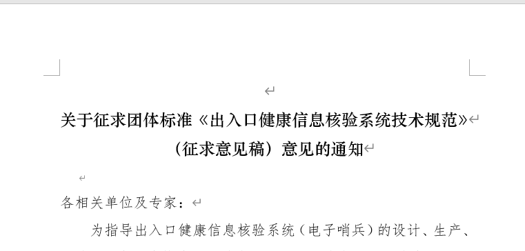 关于征求团体标准《出入口健康信息核验系统技术规范》 (征求意见稿)意见的通知