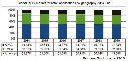 到2019年,全球零售业RFID应用市场规模预计将达到39.1亿美元,与2014年相比增加了30亿美元,据Technavio