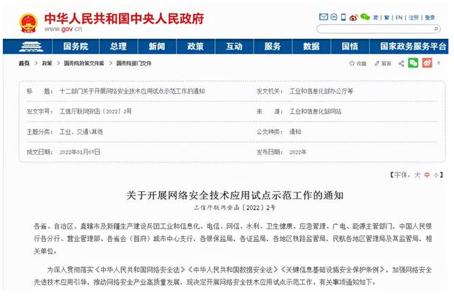 据工信部网站10日消息,工信部等十二部门发布了《关于开展网络安全技术应用试点示范工作的通知》。《通知》指出,试点示范内容以新型