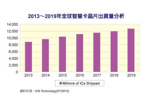 市调机构IHS指出,在智慧支付和电子化身分证件的发展趋势下,智慧卡(SmartCard)芯片的市场需求正持续攀升,并已于2014