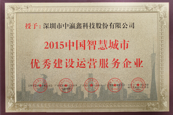 中瀛鑫荣获“2015中国智慧城市优秀建设运营服务企业”奖项