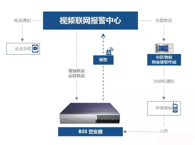 同时将报警现场的视频、图片传送到小区物业的接警终端,电话通知业主,一键报警到公安110,使业主、保安,相关部门第一时间了解现场情况,保障业主人身与财产安全。