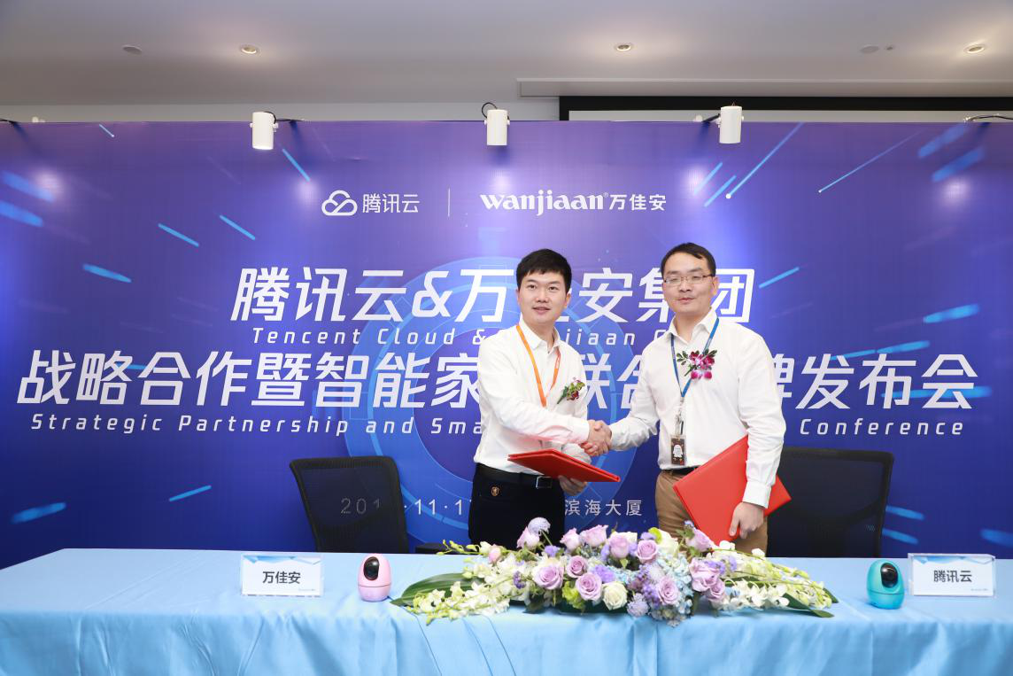 2018年11月17日,全球领先的AI智能物联解决方案及产品服务商万佳安集团携手腾讯云,在深圳滨海大厦腾讯总部正式签署战略合作协议,这也意味着双方将联手深入探索智慧家庭国际生态建设,共同构建全球智慧家庭生活的美好愿景。