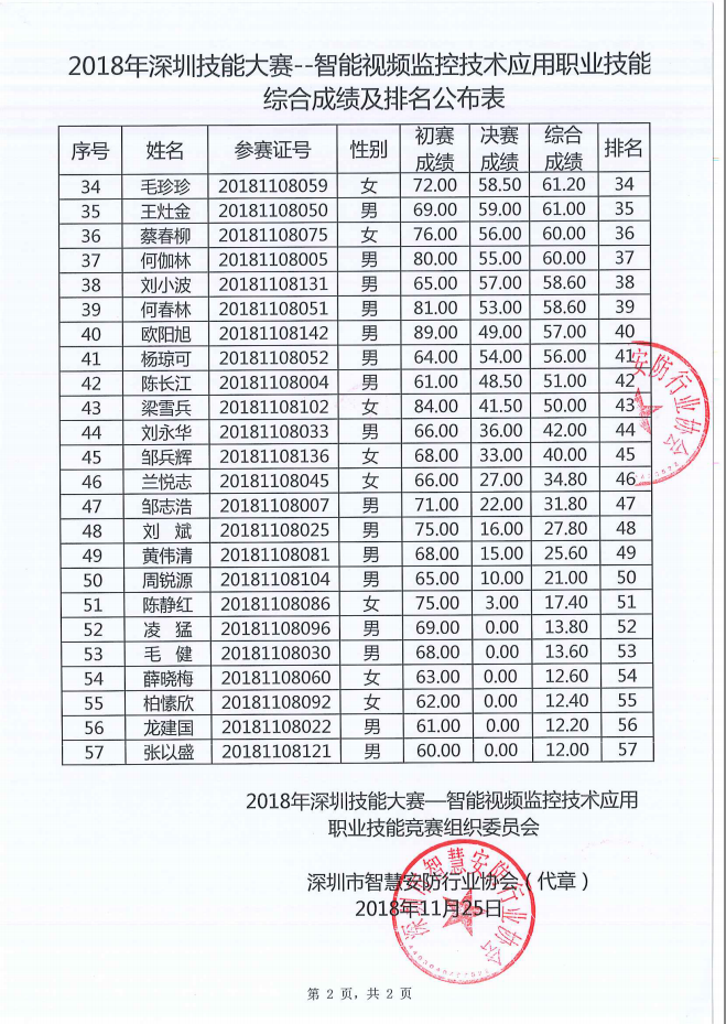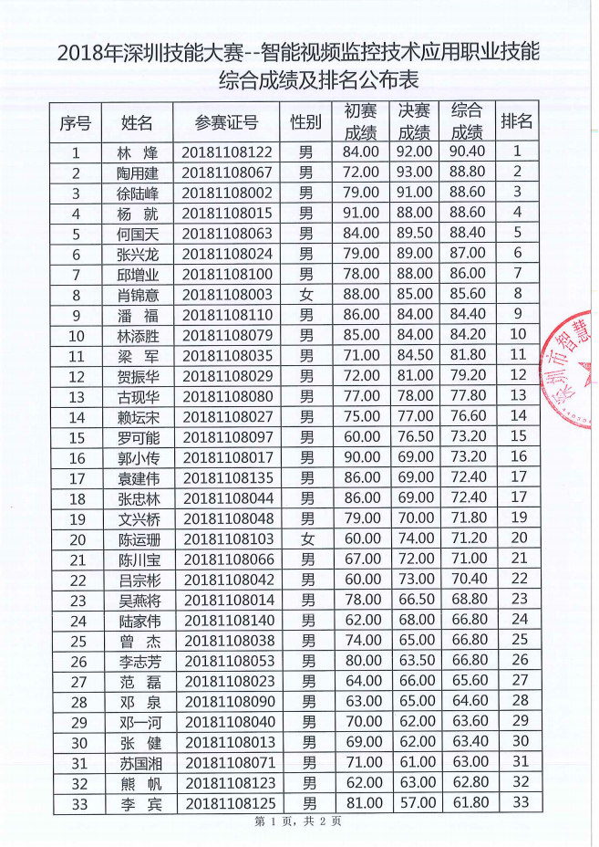 2018年深圳技能大赛——智能视频监控技术应用职业技能竞赛综合成绩公布啦!