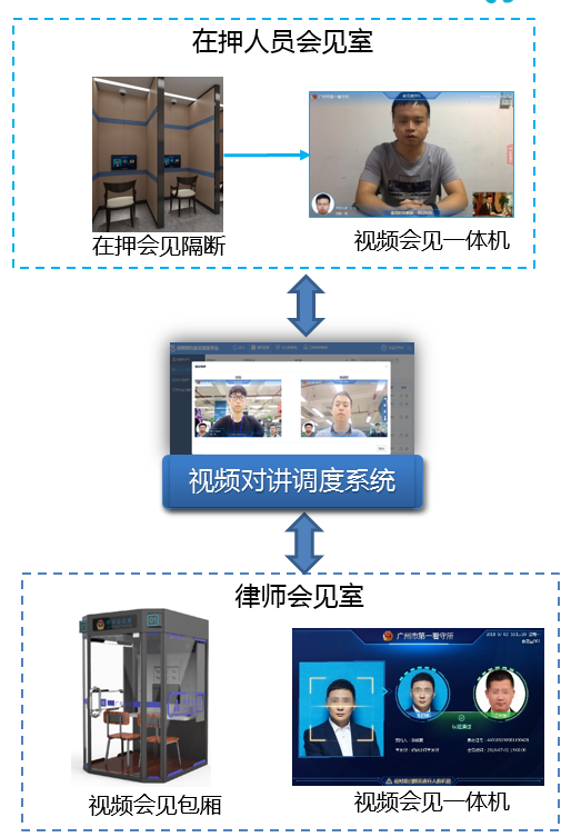 王朝普:我们了解到当前看守所存在律师会见场地不足,会见轮候时间长,会见人员难管控的难点,然后刚好我们在这一块有很深厚的技术积累、行业积累,我们创新性地将人脸识别、音视频实时对讲以及大数据分析等核心技术融入视频会见流程,打造了这个律师视频会见一体化解决方案。