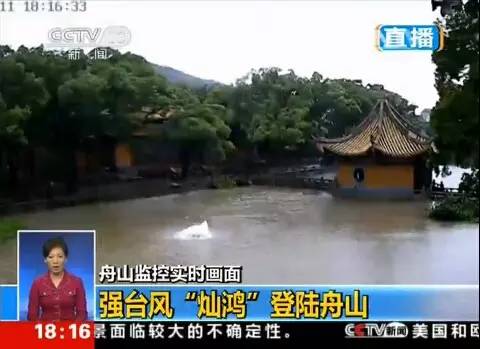 今年第9号台风“灿鸿”的中心已于7月11日16点40分前后在舟山朱家尖登陆,登陆时中心附近最大风力有14级(45米/秒),中心最低气压为955百帕。登陆后的“灿鸿”以每小时15公里左右的速度穿过舟山群岛向偏北方向移动,扑向上海海域,预计将远离浙江海域转移至黄海南部海域,然后向朝鲜半岛沿海靠近。