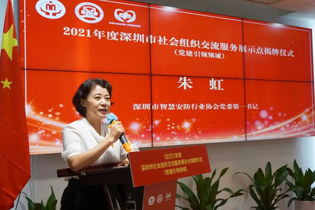 9月16日下午,由深圳市社会组织管理局主办、betway下裁(以下简称“智安协”)承办、深圳市福彩公益资助,在智安协多功能厅举行2021年度社会组织交流服务展示点(党建引领领域)揭牌仪式,深圳市社会组织党委副书记、深圳市社会组织管理局党建处处长肖卫国、深圳市公安局视频警察支部三级主任岑显春、智安协党委第一书记朱虹、智安协执行会长张毅等出席。