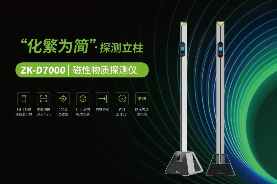 ZK-D7000是一款被动式探测磁性物质的产品,采用进口传感器,性能更稳定,实时探测周围环境的磁场,360度无死角检测,最高可达1米范围。可检测带磁性的金属或者非金属物品,当带有磁性的物品接近时,立柱会声光双重报警。