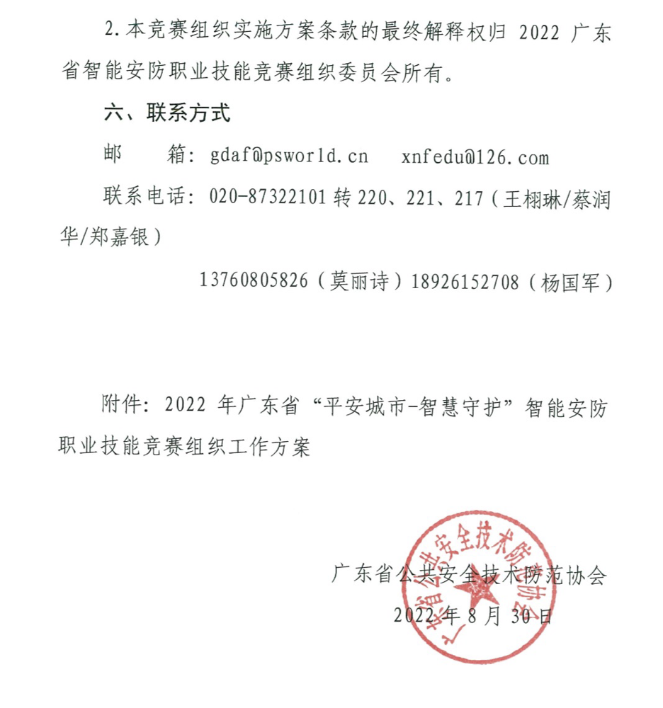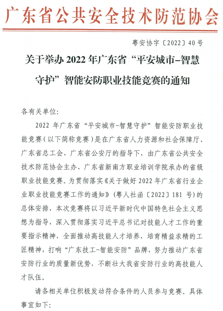 附件:2022年广东省“平安城市-智慧守护”智能安防职业技能竞赛组织工作方案
