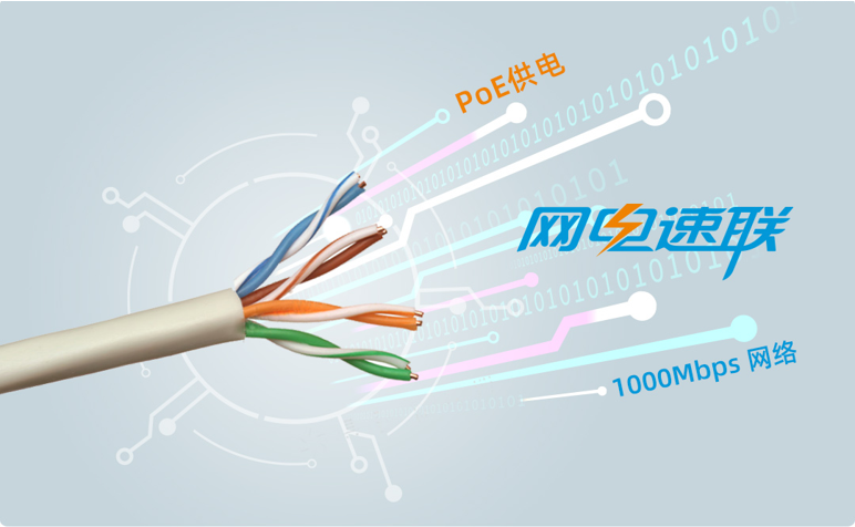 标准PoE以太网供电技术,一根网线同时对前端设备进行数据传输及供电。实现物联网设备快速接入,即插即用,节约成本。