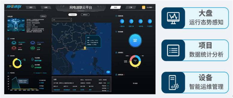系统具有网电态势感知能力,网电速联云平台可实现设备智能供电管理及一键节能,并全面显示相关数据。实现设备网电运行态势(电量、流量等)的可感、可知、可控、可算,降低企业运营成本。
