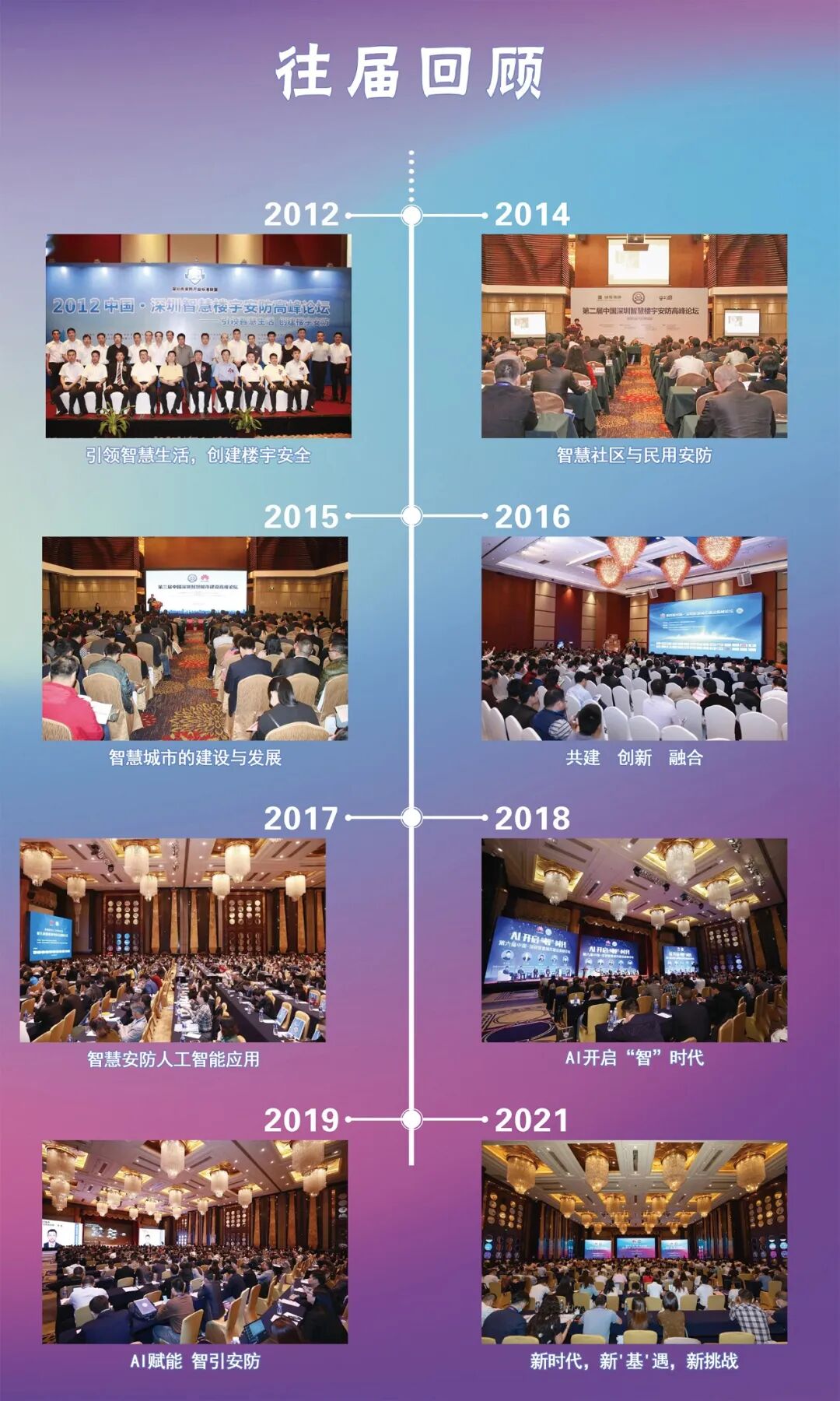 从首届论坛主题“引领智慧生活 创建楼宇安防”,到第八届“新时代,新‘基’遇,新挑战”,每一届论坛的主题都紧扣当下市场发展的主旋律。参会的行业领导、专家学者、企业家,将当下市场发展的新思路、新模式融合到论坛的主题中,使论坛的思想更深刻、更准确地渗透到行业。