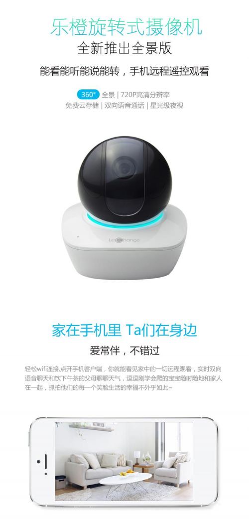 “妈妈派”:“作为一个妈妈,我最关心的是宝贝的安全。这款产品和其它同类产品相比很大的一个优势就是可以远程遥控实现360度全景无死角观察,这就意味着,无论是我家宝贝突发奇想爬到桌子底下玩耍还是在家不断快乐的奔跑,我都能通过手机上的乐橙APP,自由控制这个摄像头的转动方向,这样就可以随时看见我的宝贝,对他们全方位看护,从而减少焦虑和不安全感。而且旋转顺畅,也基本没有噪音,堪称完美。此外,作为妈妈,出门在外想孩子的那种心情真的是非常难过,现在我可以通过APP随时看见宝贝在家里的情况,还能和他说话,出差的时候也可以给他讲睡前故事,这款‘大眼仔’使用的mic360度立体环绕拾音技术,可以让讲话的声音非常清楚,真的很贴心。”
