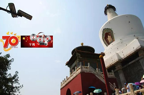 图:2015年9月2日的北海,位于北京中轴线的宇视监控系统和永安寺白塔,这里4个多世纪以来目睹光荣、哀伤与复兴,今天重回“寿国佑民”的象征