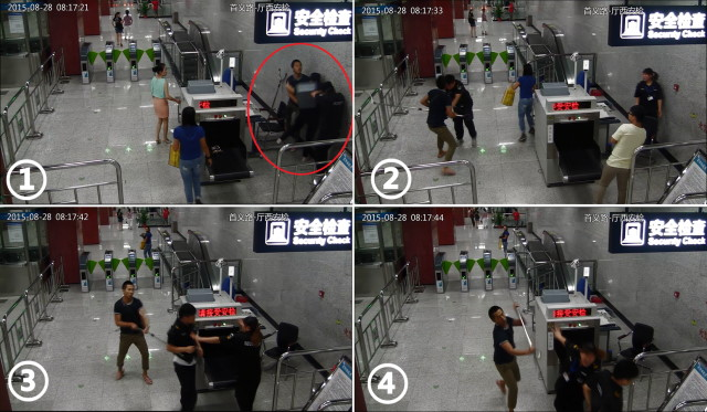 图:武汉地铁“拒检男”殴打安检员,地铁监控视频截图(图片:武汉晨报)