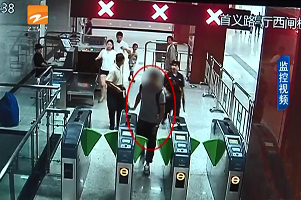 图:地铁视频监控记录显示,“拒检男”也经常强闯安检(图片:浙江卫视)