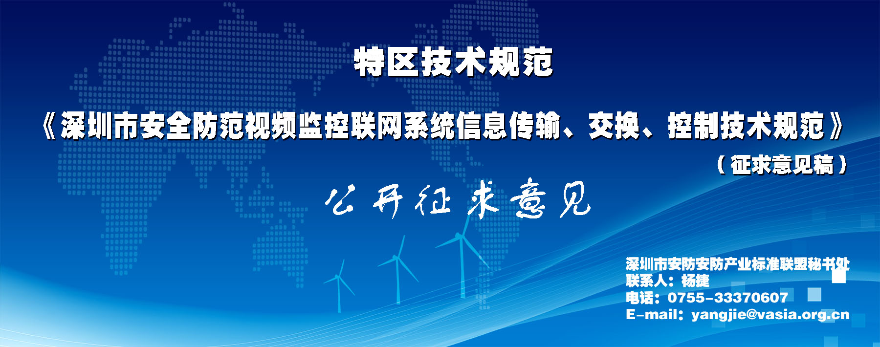 由深圳市公安局技防办提出并归口,深圳市安防产业标准联盟组织起草的特区技术规范《深圳市安全防范视频监控联网系统信息传输、交换、控制技术规范》(原名称为:《深圳市安全防范视频监控接入技术规范》)现已完成征求意见稿(详见附件1)。为保证标准的适用性和可操作性,从即日起公开征求意见。凡对该标准感兴趣的单位和个人均可提出意见和建议,并请认真填写意见汇总处理表(详见附件2),于2014年3月10日前将电子版通过电子邮件方式反馈至联盟秘书处。