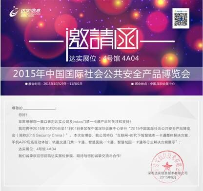 达实信息第十五届中国国际社会公共安全博览会邀请函