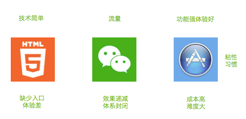 开发技术简单,研发周期短,微信可以带来流量和用户 |