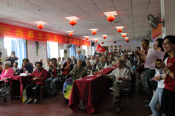 当天上午,伴随着院内歌声,智安协秘书处全体成员走进护理院,给老人们送去了水果、营养品,当天正好是护理院的每月一次的老人生日会,智安协陪50位老人共同度过了一个开心的生日。