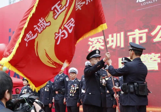 本届开放日在去年活动的基础上更多融入了关爱警察的内容。当日上午在主舞台,10位退休民警代表热泪盈眶,激情澎湃,将象征警队传承光荣和使命的旗帜递交新警代表。从风华正茂到双鬓染白,从穿上警服到光荣退休,从警之路上,他们的足迹闪闪发光。退休民警代表将书写着“忠诚、正义、为民、奉献”的旗帜交给新入职民警,嘱托他们“忠诚履职,续写光荣”,也是“警民情”、“警营情”、“战友情”这些深圳警队核心价值观的传承。