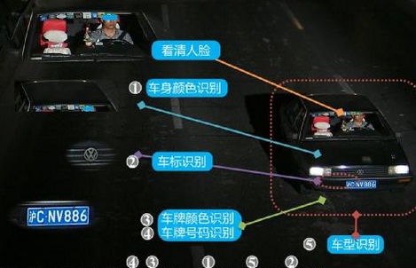 该技术是采用模式识别的方法,对动态场景中移动目标定位、识别、跟踪,、分析、判断目标特征和行为的技术,实现车辆类型、车身颜色、车标识别、系安全带与否、遮阳板遮挡与否等识别。