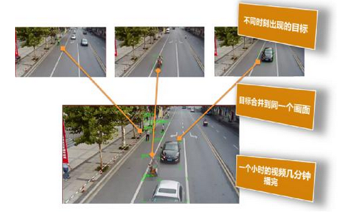 视频摘要分析系统是基于图像分析技术的典型应用,该系统采用视频摘要分析技术,从视频录像中获取相对应的目标出现到离开过程中的数据,并将几个目标以一定的方式进行组合,实现摘要播放,达到快速预览视频以定位到关键的内容,可以解决海量视频分析完全依赖人工的问题。让管理人员只需查看摘要视频即可快速将可疑目标锁定。