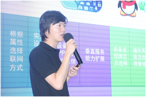 论坛大会正式启动,现场首先邀请到QQ物联总经理王涛上台致辞,他表示,QQ物联现在已经向合作伙伴开放了快速联网能力、消息触达能力、大数据计算能力、安全稳定、一点接入、服务扩展、海量覆盖在内的7大基础能力,有效解决了基本的人与物快速连接的问题,特别是在安防智能家具方面,基础能力得到比较完整的应用。