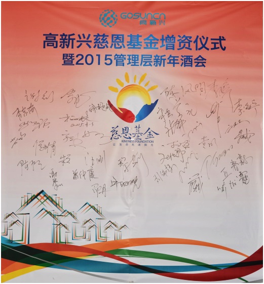 2015年3月13日晚,“高新兴慈恩基金增资仪式暨2015管理层新年酒会”在广州举行,高新兴管理层集体盛装出席,并慷慨解囊为高新兴慈恩基金增资。