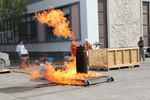 市应急队伍演示带压堵漏、无人机操作及火灾模拟等应急设施设备操作,展示虚拟应急救援演练系统,研讨充分利用科技手段的方式方法。