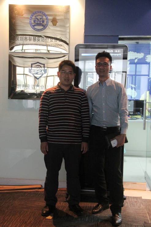 图为智安协副秘书长龙宇峰(左)与深圳立方体科技有限公司袁海镇(右)合影