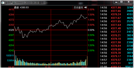 深圳证券交易所和深圳证券信息有限公司日前宣布,为反映深圳市场安防产业相关上市公司的整体表现,向投资者提供更丰富的指数化投资标的,定于2016年6月20日发布深证安防产业指数(简称“安防产业”,代码“399693”)。该指数以2012年6月29日为基日,基点1000点。首个交易日(2016年6月20日),该指数以4330.29点开盘,最高触及4392.48点,收盘于4380.93点,全天涨幅达1.17%,跑赢沪深各主要指数。