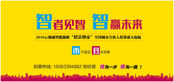 2016年云视通智能猫眼“招县纳市”全国城市合伙人招募盛大起航,期待更多有志于智能家居产业发展的梦想者一起共赢财富新蓝海!