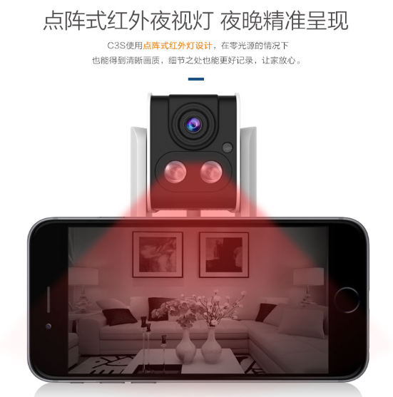 我们都知道,对于智能摄像机来说,画质是否清晰、色彩是否真实是影响用户购买的首要条件,虽然这两款产品同样拥有130万像素,但云视通智能摄像机C3S采用工业级光学玻璃镜片,画质清晰明亮,自动白平衡算法优越,色彩还原真实;内置两颗点阵式红外灯,运用3D降噪技术,在弱光和昏暗的环境下,有效避免噪点的产生,夜视环境下清晰度明显高于某品牌智能摄像机。