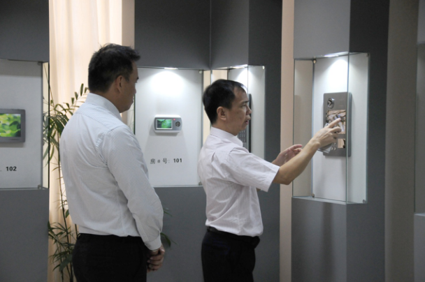 随后,慧锐通董事长肖明超带领新钶电子(上海)有限公司总经理吴振轩以及新钶电子考察团一行参观我司智能家居体验馆和产品展示厅,一进门就被高端大气、尊贵奢华的高科技智能家居系统所震撼,紧接着,慧锐通董事长肖明超亲自向来宾们演示智能家居控制系统,详细解说了其中的“奥妙”,当高科技智能化的场景活灵活现的展示在大家眼前时,来宾们不得不为慧锐通完善成熟的智能家居系统所震撼,那些只在电视上呈现的高科技画面,今天却真实的体验了,如同来到另一个世界般美妙。
