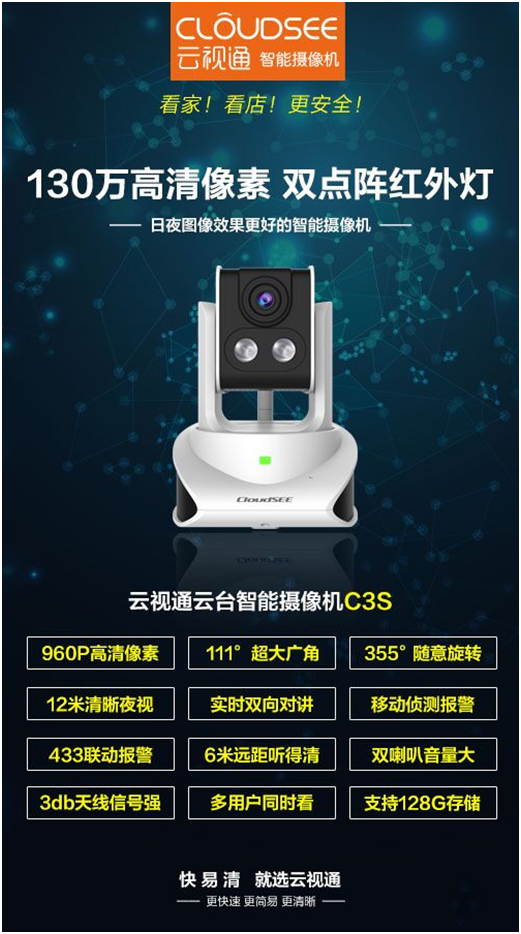 云视通智能摄像机C3S作为机皇,明星爆款机型,一直深受消费者欢迎,你没有心动?