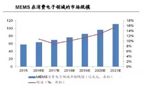 Yole预计2015-2021年全球MEMS市场的复合年增长率(CAGR)为8.9%,将从119亿美元增长到200亿美元。
