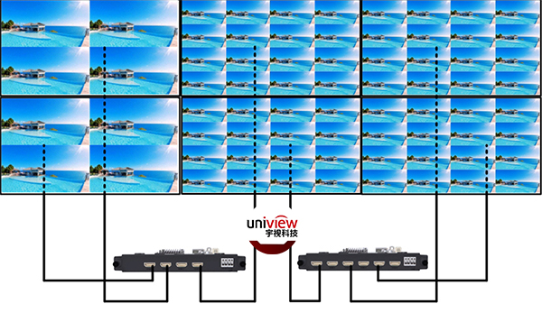 图:宇视S200+四路、六路HDMI解码卡,可实现多种大屏上墙组合
