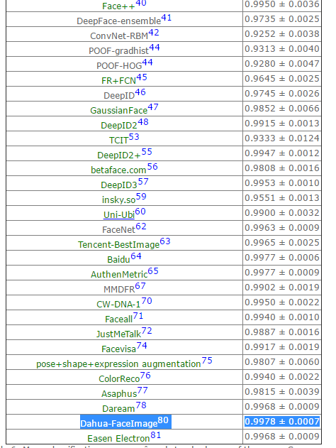 图1 LFW评测结果显示Dahua-FaceImage排名第一