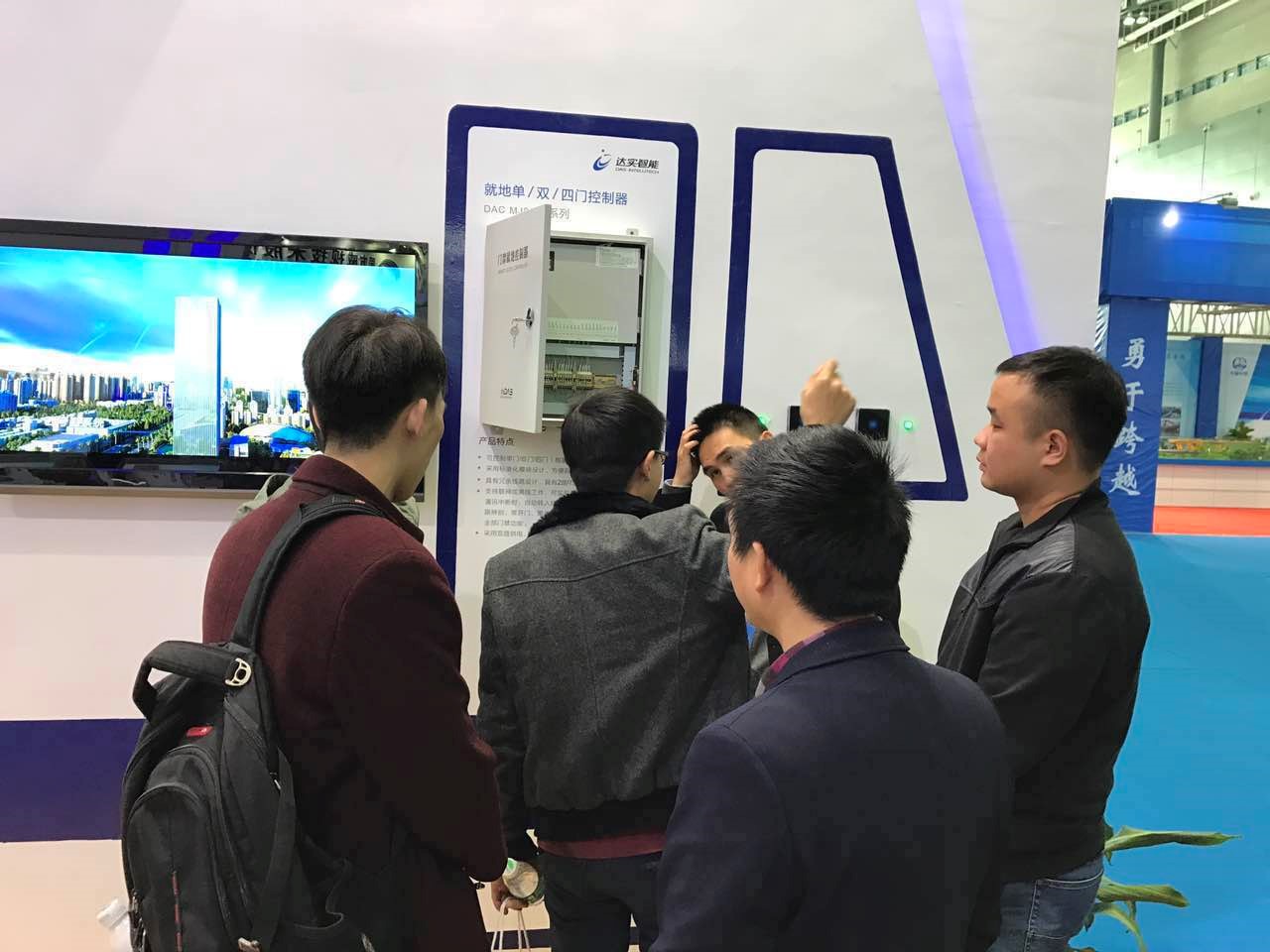 技术人员向参观者介绍轨道交通门禁