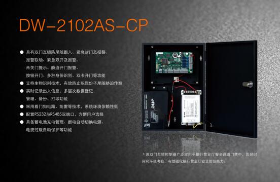 DW-2102AS 是丽泽第一代门禁的明星产品,占据了当时全国各大银行营业厅防尾随联动互锁安全门近50%的市场份额。在当时国外门禁品牌仍占市场主导地位的年代,实属不易。