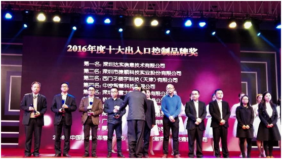 达实信息再度斩获“2016年十大出入口控制品牌奖”第一名