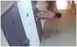 罪犯用力撑出送饭窗口 罪犯全身赤裸钻了出来