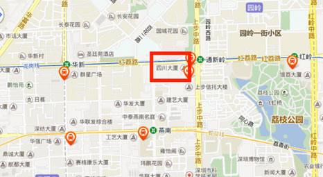 深圳市福田区红荔路2001号四川宾馆二楼芙蓉厅(位于福田区红荔路与上步路交界处,地铁3号龙岗线通新岭站A出口南侧,四川大厦内)。