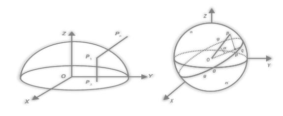 上图是鱼眼镜头的成像模型,我们将鱼眼镜头近似为一个半球面,鱼眼摄像机的拍摄方向OZ轴为光轴,XOY为成像平面,对于空间场景中的任意一点P0,连接OP0交半球面于点P1,过点P1作光轴OZ的平行线,交成像平面XOY于点P2,则点P2就是空间点P0成像平面XOY上所成的像,于是,对鱼眼图像来说,所拍摄到的图像是一个圆形区域,并且画面周边的直线都会被弯曲,只有镜头中心部分的直线可以保持原来的状态。因此需要采用的3D图像校正算法,将这些鱼眼图像上的每个2D成像平面点逆向映射到3D场景中,再投影构成校正图像的2D平面点,来实现校正。具体的3D校正算法比较复杂,算法的合理性、编程水平的高低及最终系统资源占用率,共同决定了算法的优劣,优异的矫正算法才能实现精度高、无失真的图像校正。