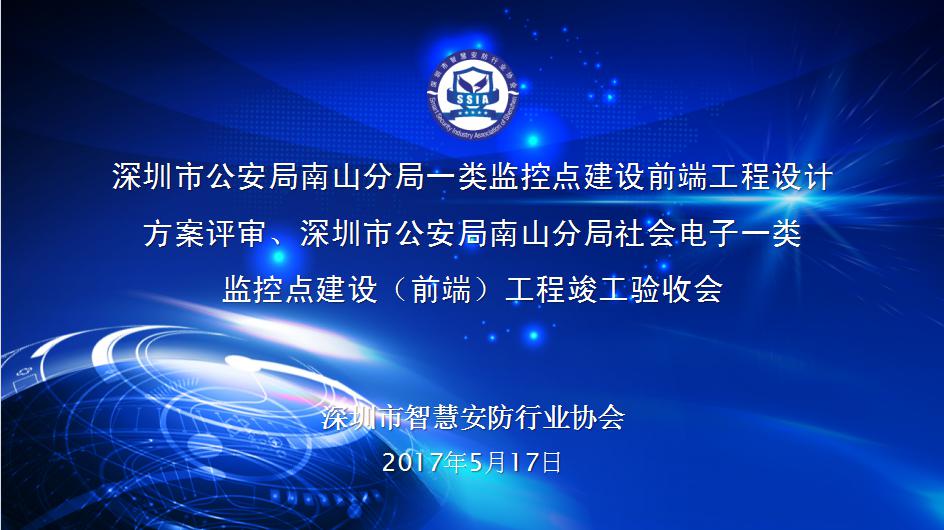 2017年5月17日下午,betway下裁(以下简称“智安协”)受深圳市公安局南山分局委托在南山分局组织召开了“深圳市公安局南山分局一类监控点建设前端工程初步设计与概算评审、深圳市公安局南山分局社会电子一类监控点建设(前端)工程竣工验收会”。