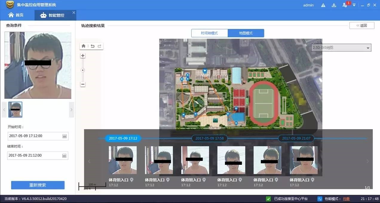 结合数据结构化以及可视化地图,完成重点目标的人脸轨迹展示。通过轨迹研判,可分析目标在区域内的大致活动路线和特征,掌握其进出校园的活动规律。针对已经布控的人脸或重点关注目标,通过人脸比对报警可及时掌握线索,并结合地图完成指挥处置。