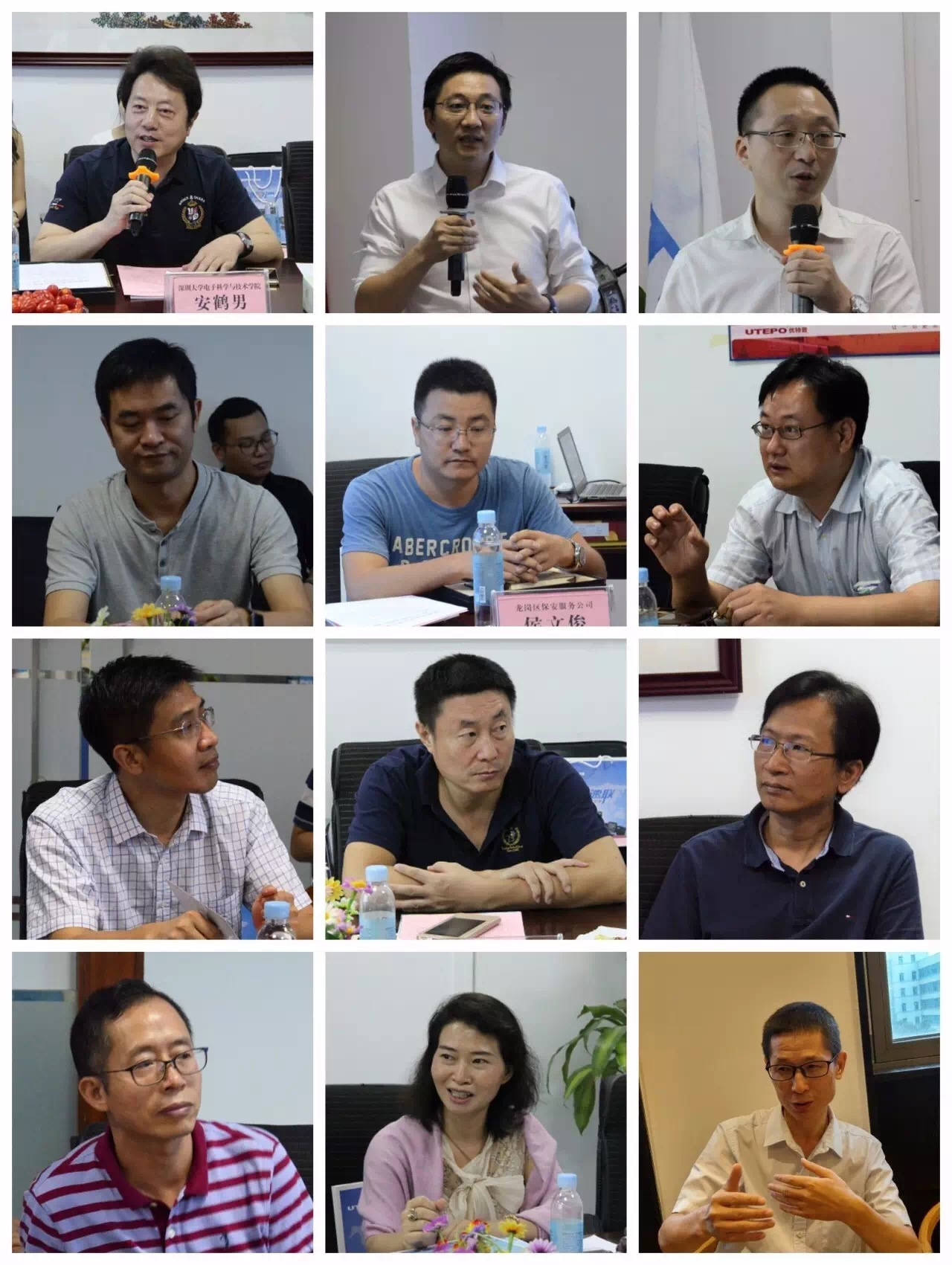智安协专家委主任、深圳大学电子科学与技术学院教授安鹤男,智安协执行会长张毅,深圳市优特普科技有限公司董事长聂怀东、总经理聂怀军,深圳市龙岗区保安服务公司安防事业部总经理侯文俊,深圳市星火电子工程公司智能视频事业部总经理王学军,深圳市迪威视讯股份有限公司总裁助理张圣,深圳市泰英通信工程有限公司总经理章 翔,深圳市仁用电子系统有限公司副总经理胡传梅,深圳市富源信息技术有限公司董事长陈丽萍,华为技术有限公司产品管理部部长张忠,深圳市博远智能设备有限公司总经理刘剑祥,中国电信股份有限公司深圳分公司行业总监邢越,深圳市君安达科技有限公司总经理钟秀春,深圳市时联实业发展有限公司总经理林斌,深圳市中安智慧实业有限公司总经理房用风。