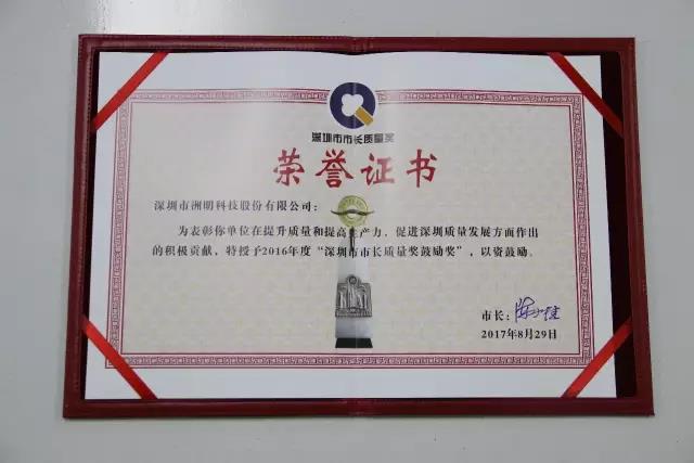 洲明科技荣获2016年度深圳市市长质量奖鼓励奖